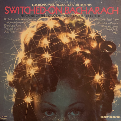 Decca no quiere quedarse atrás y produce un álbum en el que participa el sintetizador Moog. La producción está coordinada por Harry Meyerson. La orquesta y los arreglos corresponden a Dave Mullaney. Se eligen temas de Burt Freeman Bacharach (nacido el 12 de mayo de 1928), el cual es un compositor, productor discográfico y pianista estadounidense que compuso cientos de canciones pop desde finales de la década de 1950 hasta la década de 1980, muchas en colaboración con el letrista Hal David. El moog es interpretado por Christopher Scott. El álbum se titula Switched-On Bacharach, jugando con el título de Wendy Carlos. Enlace al álbum completo: